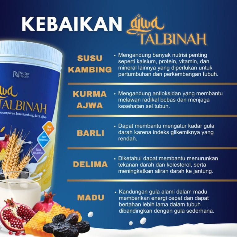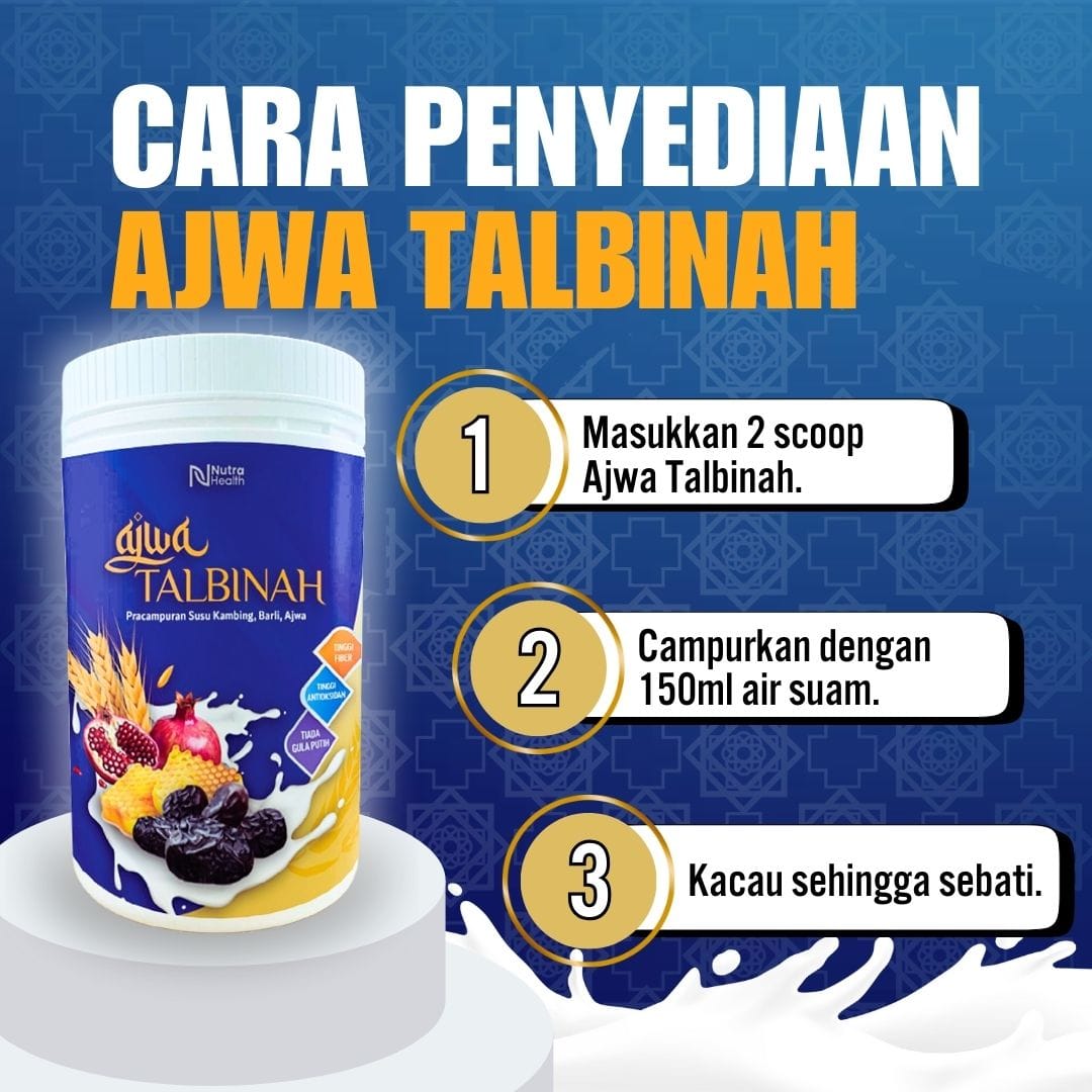 Ajwa Talbinah diinovasikan dengan bahan2 tambahan seperti Ekstrak Kurma Ajwa, Ekstrak Delima, Madu, Barli dan Susu Kambing!
