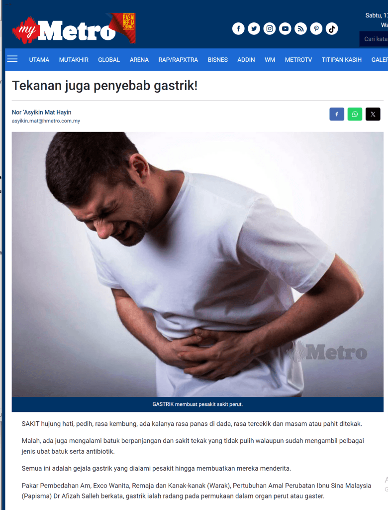 Penyakit perut seperti gastrik & gerd sebenarnya berkait rapat dengan kemurungan & stress.