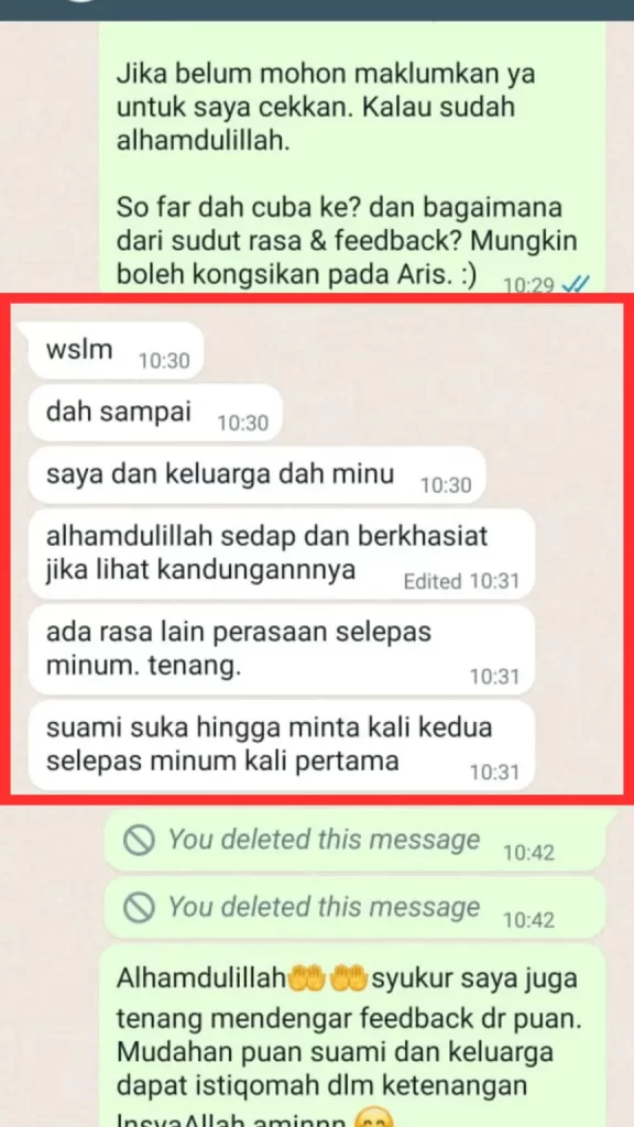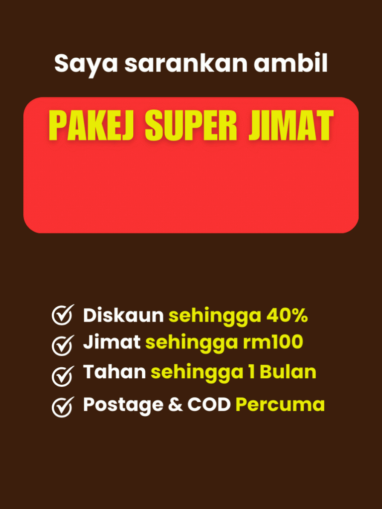 *PENAFIAN: Keberkesanan produk ini bergantung kepada kesesuaian individu. Setiap hasil dari penggunaan adalah berbeza bagi setiap individu. Produk ini akan memberi kesan terbaik sekiranya pengguna mengamalkan dengan cara betul berdasarkan banyak testimoni yang diperolehi. Kita berikhtiar, tuhan yang menyembuhkan.